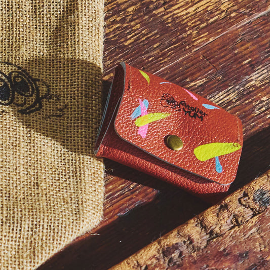 100% Recycled PVC Leather Coin Purse Hand Painted - Brown