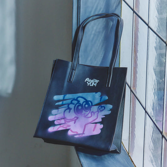 Stencil Spray Art PVC Leather Tote Bag - Black