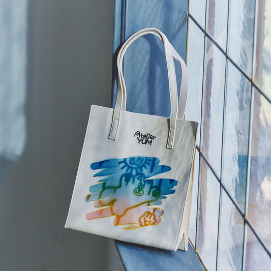 Stencil Spray Art PVC Leather Tote Bag - Ivory