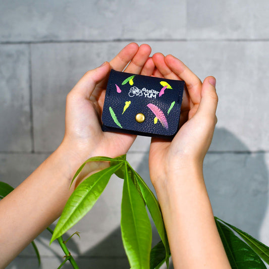 100% 再生PVC皮革手工繪製零錢包 - 海軍藍